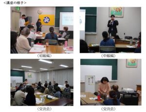 本年度は、初級編と中級編の2日間(9/25・10/23)にわたり、アクティヴリッスン代表 澤村氏(公認心理師)をお招きして傾聴ボランティア講座を開催しました。初級編では、同時に交流会を開催し、傾聴Gうさみみ代表の渡辺氏から活動報告をしていただきました。活動報告の後は、4グループに分かれて参加者同士の交流を行い、和やかな雰囲気で交流することができました。中級編では、初級編を踏まえて「ありのままを聴く」ために「相手を理解する(知る)際に大切なこと」を学びました。